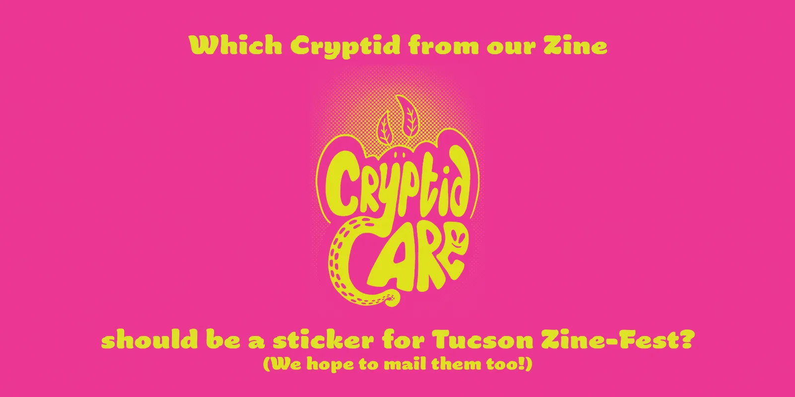 Which Cryptid from our Zine 'Cryptid Care' should be a sticker for Tucson Zine-Fest? (We hope to mail them too!) You can select multiple - but top voted wins!